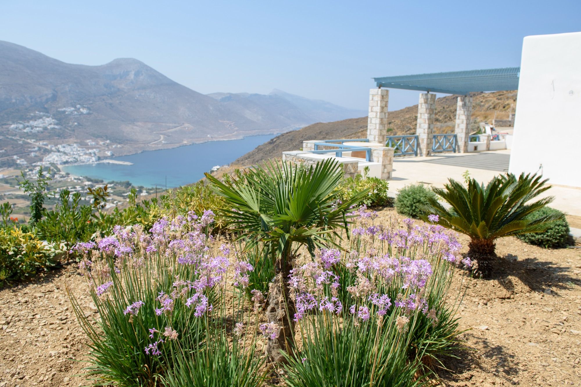 L'emplacement du complexe d'habitation sur le terrain a été choisi de manière à garantir des vues panoramiques sur la baie d'Aegiali depuis n'importe quel point du terrain.